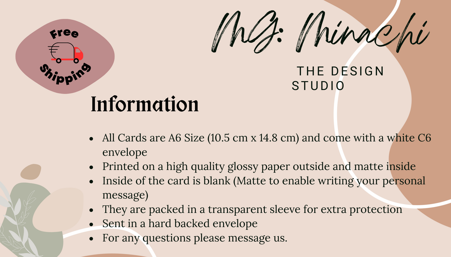 • Designed and printed in the UK on 260gsm heavy weight Gloss card. The card is matte on the inside making it easier to add your own personal touch to it with a lovely message.